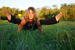 When I began practicing yoga over 15 years ago, I quickly discovered that I had happened into something very powerful. As I realized the transformative effects of yoga on a physical, mental and energetic level, my mission became sharing it with others. In 2003, I completed my first teacher training and received my 200-hour teaching certification from Ana Forrest. I have since completed trainings with nationally and world-renowned programs and teachers, including Moksha, Yogaview (Level 2), Shiva Rea and Rod Stryker, and I continue to study with master teachers on an on-going basis. After receiving a B.A. from U of I, I received a Master’s Degree in Education from Northwestern University. This, and my 20 years of teaching both on and off the mat, allows me to make accessible some of the subtler aspects of yoga. My teaching style is a fusion of the various yoga disciplines I’ve studied, and emphasizes breath, strength, and spirit, while placing equal importance in finding a place for joy and laughter in the practice. Always a different sequence, my classes are challenging and often rather sweaty, yet provide a safe haven for students of all abilities. My Level 2 class is a vigorous but moderately-paced Vinyasa-style flow practice in which the asanas (poses) are linked with breath, with an emphasis on alignment. While each class has a different theme or peak pose, my classes are well-rounded and will leave you feeling balanced. Class usually begins with pranayama (breath work) and/or a brief meditation, followed by sun salutations, classical standing and seated poses, as well as backbends and inversions. The creative and challenging sequences will systematically prepare you for a playful exploration of the deeper peak poses.